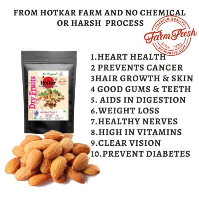 Hotkar Handpicked Pure Almonds are a great choice. These almonds are a natural and nutritious snack that are free of any chemical or colored processing. They are collected right from the farm and are sun-dried for optimal flavor and texture.